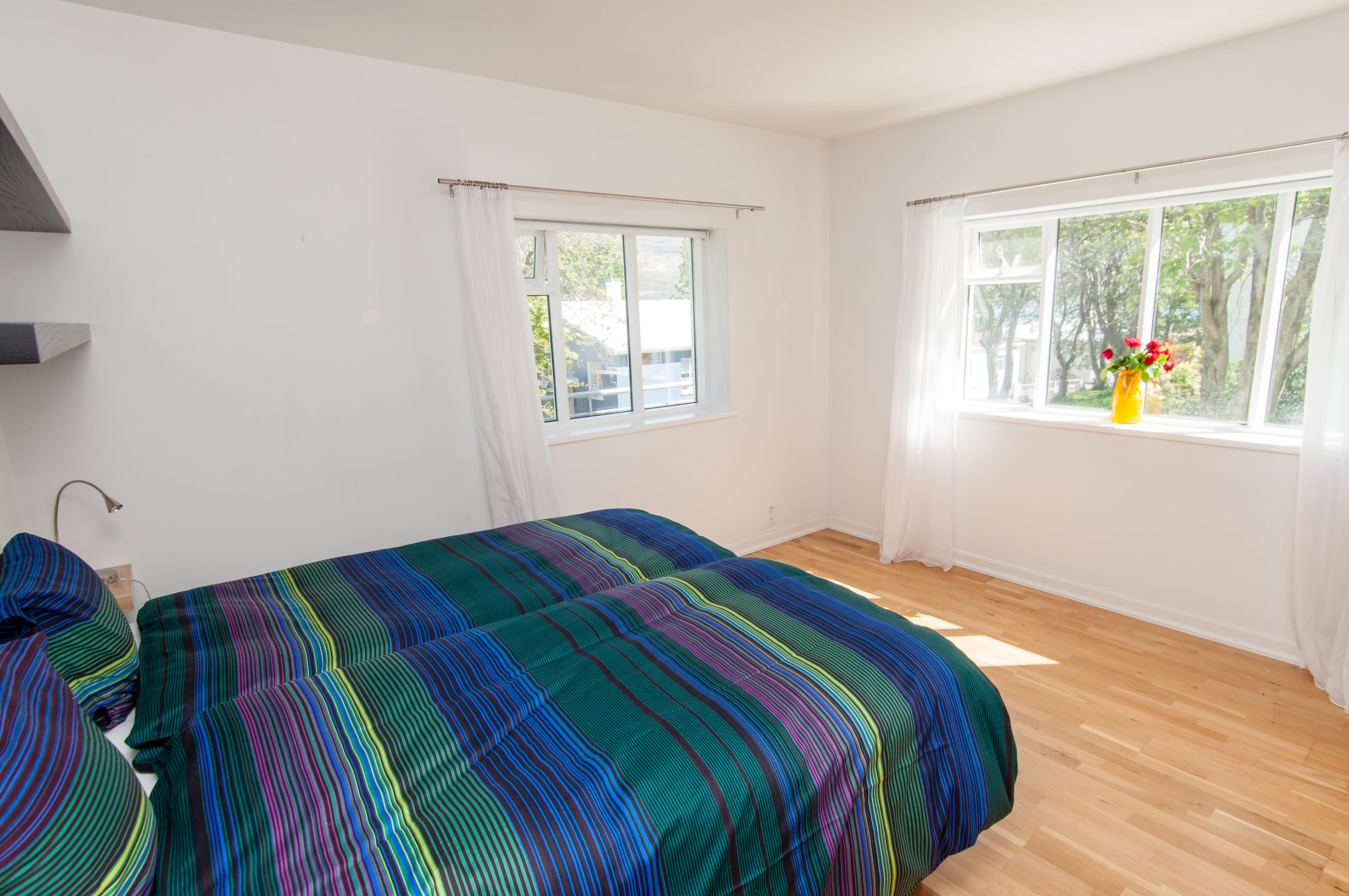 Björt og rúmgóð íbúð með gott útsýni yfir Eyjafjörðinn. Nútímalegt eldhús, silkigardínur og íslensk myndlist á veggjum. Íbúðin rúmar 6 manns í 3 svefnherbergjum. Einungis steinsnar frá íbúðinni er Lystigarðurinn, sem er einstakur svo norðarlega í heiminum.
