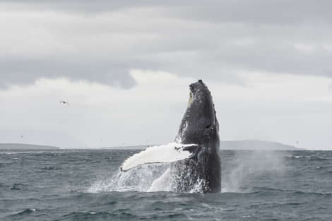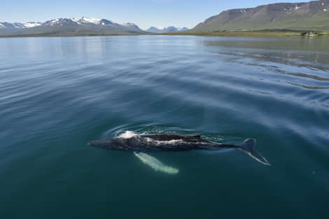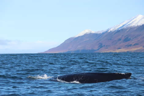 Here is your chance to see the incredible Eyjafjord Humpbacks in their natural habitat. The warmth of the summer sun brings vibrant life and plenitude of food to the fjord and following it, in a feeding frenzy, come the larger-than-life Humpbacks.