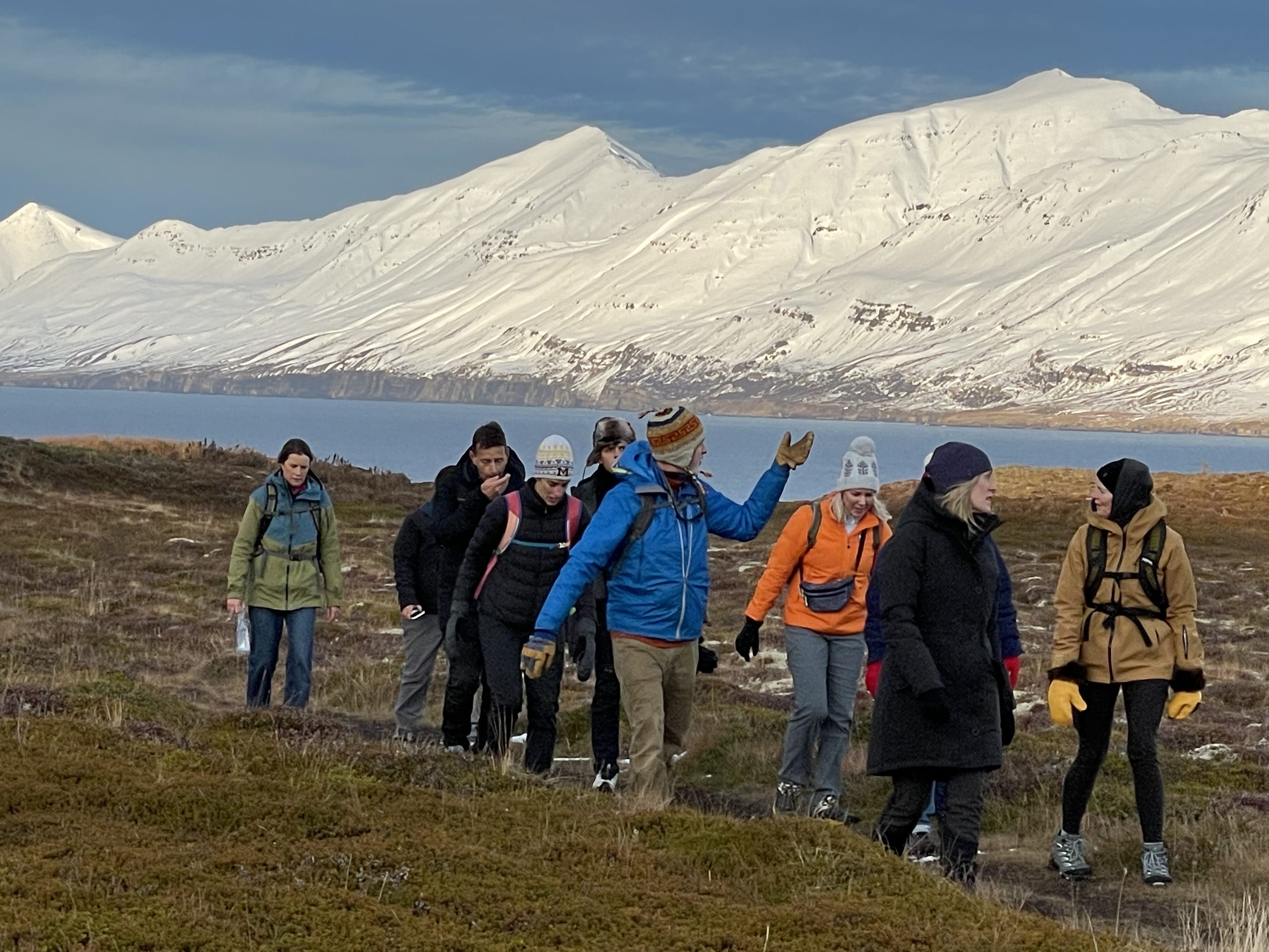 After lunch we go for an inspired hike above the cliffs of Akureyri. On the way up to the cliffs we stop in a scenic spot for an ever-new yoga practice. Once we have reached the height of the cliffs, we enjoy an amazing view over the fjord and mountains all the way.