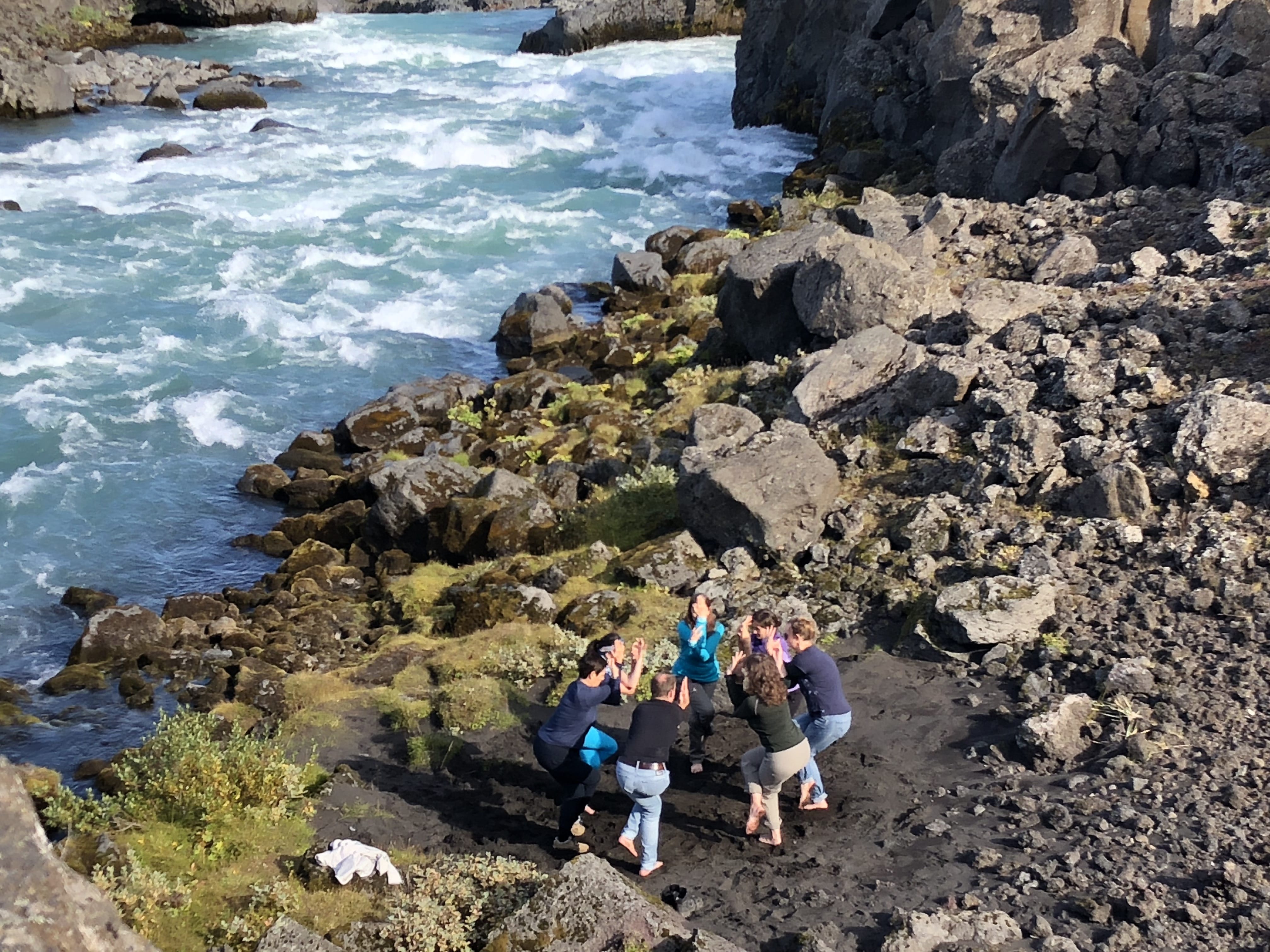 We start the morning with a yoga sequence 1.5 hrs indoor. At lunch we start our journey to one of the most exciting areas of Iceland: Lake Mývatn. Here we experience the fantastic world within an active volcanic area with its hot springs, bubbling mud pools and bright colors. Our first stop is at Goðafoss, the waterfall of the Gods. Here we will be doing yoga at the sand beach.